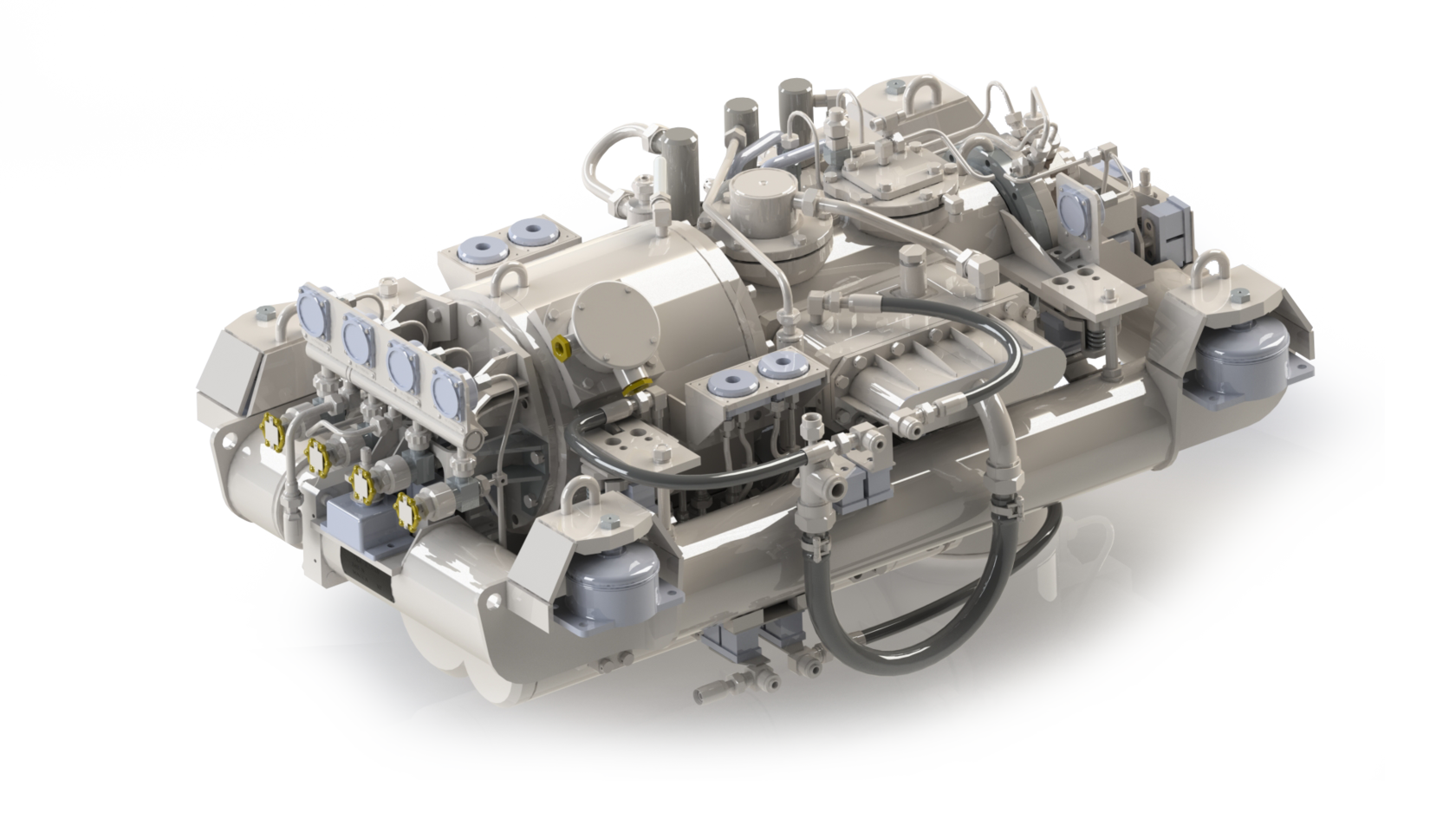 Тип компрессора - поршневой, горизонтальный, оппозитный, шестицелиндровый, со встроенным двигателем, с водяным охлаждением